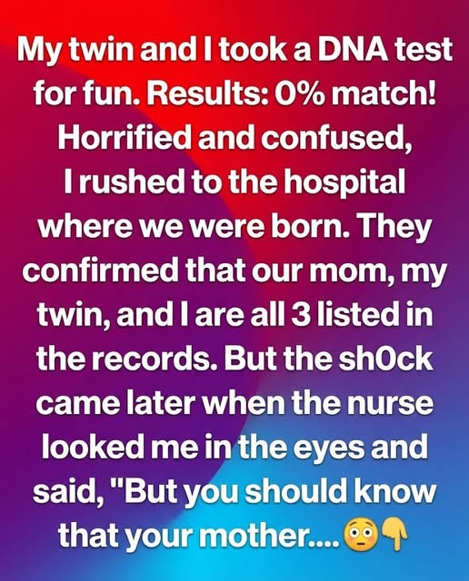 The world tilted. The air left my lungs. My twin sister, the girl I had shared every moment of my life with, the one I had called my mirror, my other half… didn’t share a biological father with me. WE WERE NOT FULL SIBLINGS. We were half-siblings, at best, sharing only our mother.