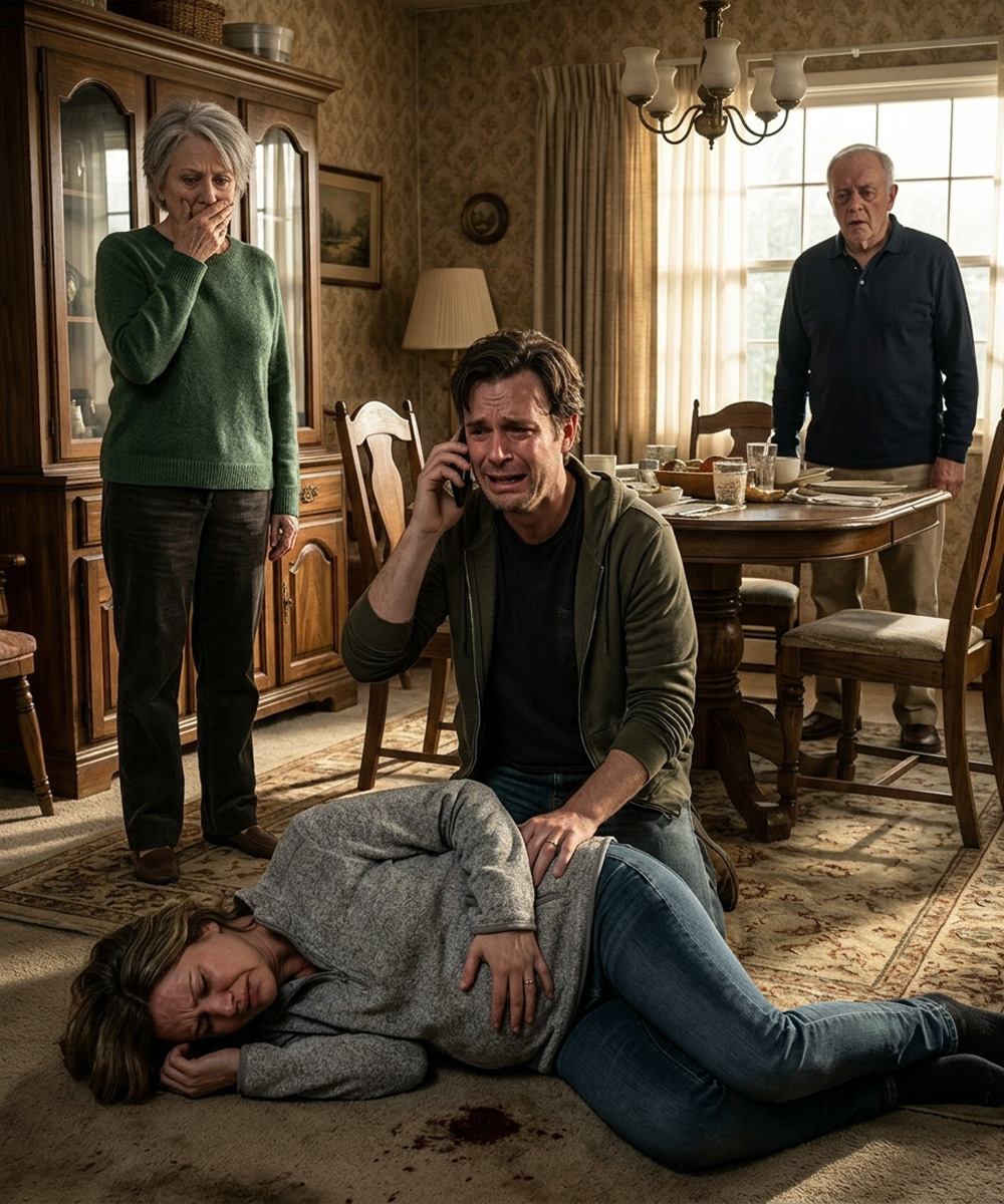 Tyler dropped beside me on the floor while speaking to the emergency operator. His voice shook as he gave our address and said, “My mother assaulted my pregnant wife. She’s bleeding. Please hurry.” I had never heard him sound like that before—not exactly fear, but like something inside him had broken. His father, Jim, stood near the counter in stunned silence, one hand braced against it. Carol kept repeating, “I didn’t mean it. She provoked me. I barely touched her.” But even she sounded less certain with each word.