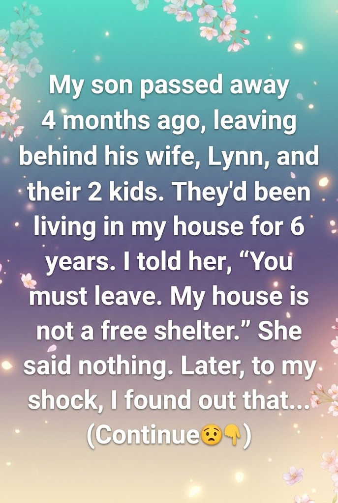 My son Jake (35) d.ied in a car accident four months ago. He left behind his wife, Lynn (31), and their two young sons — Ben (5) and Harry (3). For the past six years, they’d all been living in my home.