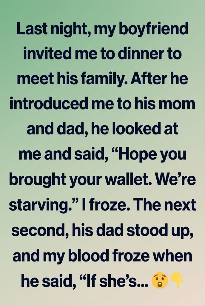 Turns out this wasn’t a normal “meet the parents” dinner. Oh no. This was apparently some kind of initiation ritual — a family tradition where the girlfriend pays for the entire table to prove she isn’t planning to “use their son someday.”