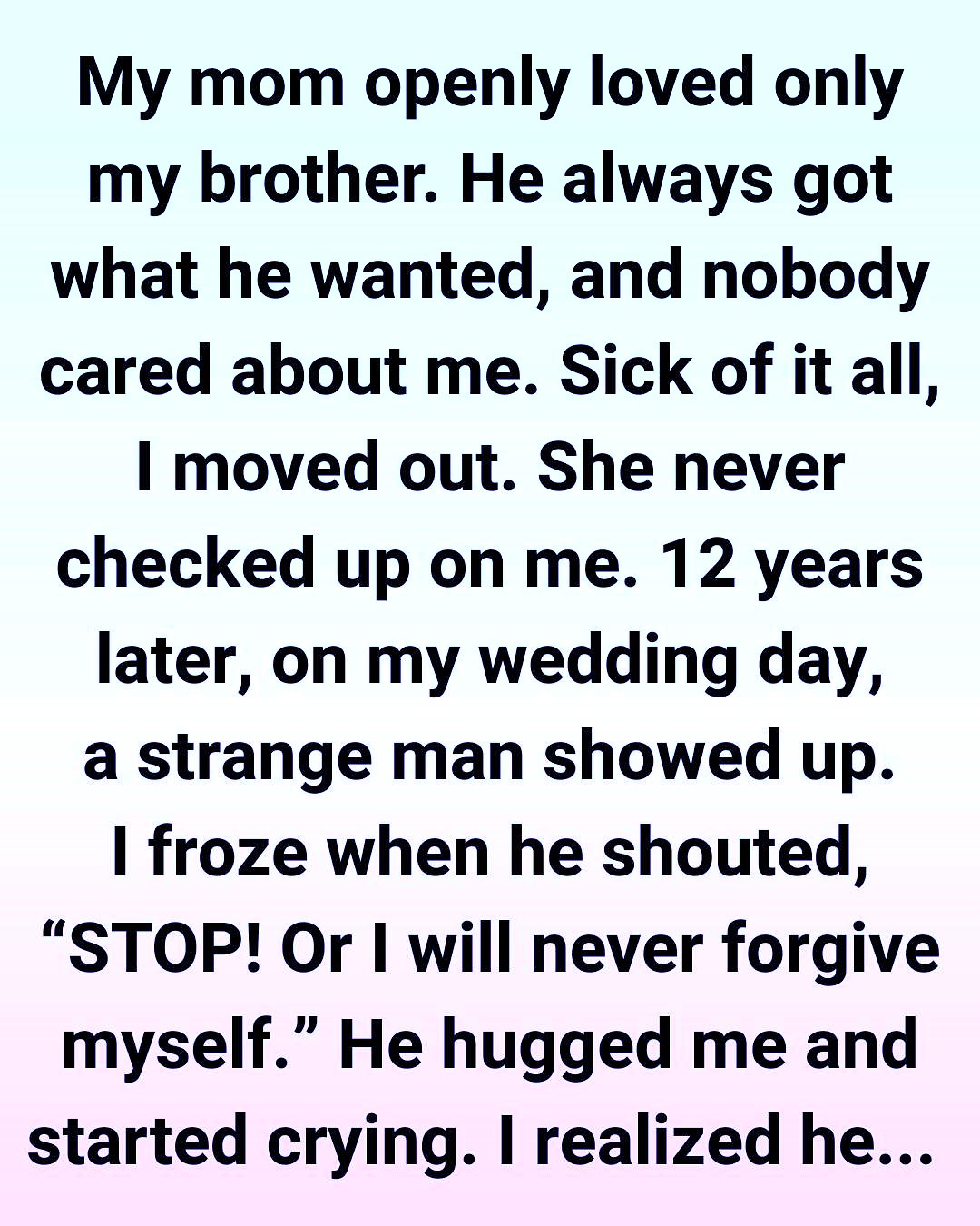 Twelve years passed. I built my own life, learned to smile again, and finally found someone who loved me for who I was. On my wedding day, surrounded by friends and laughter, I felt a peace I hadn’t known in years—until a sudden commotion broke out near the entrance.
